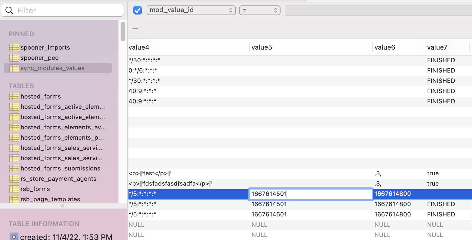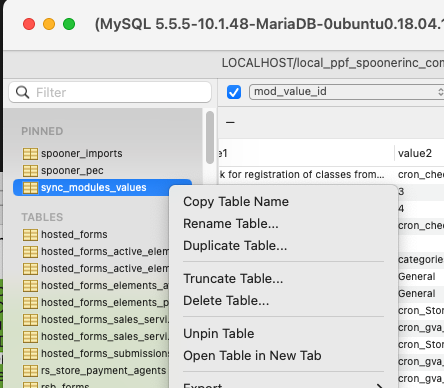Now if you want to force the cron to run now and not wait for it. You can do that by going to the third table we've pinned "sync_mod_values" and we'll manipulate the cron to trigger...
