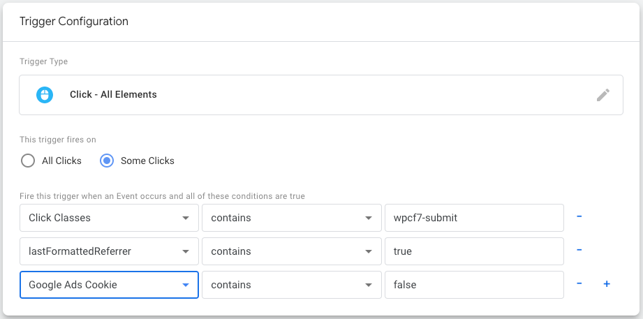 lastFormattedReferrer contains true & Google Ads Cookie contains false