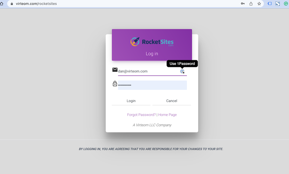 2. Login with the credentials found on 1Password (if you need help finding this, please reach out to the Copywriter (Manny Detres) for assistance.
