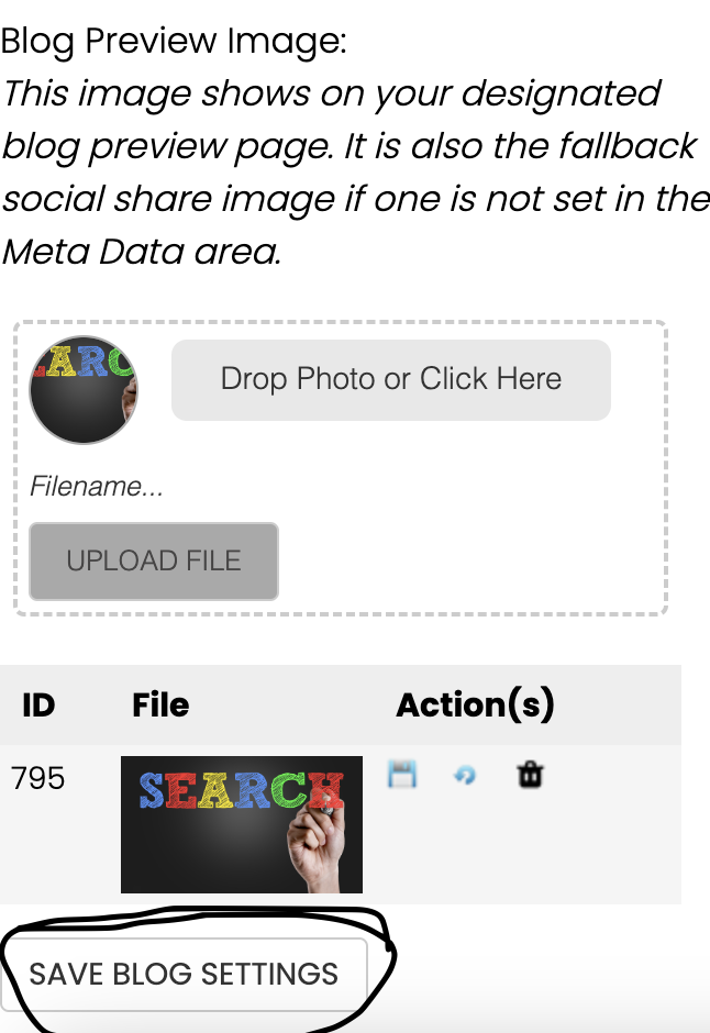 Page Settings/Meta Data/Blog Settings/Blog photo uploading
