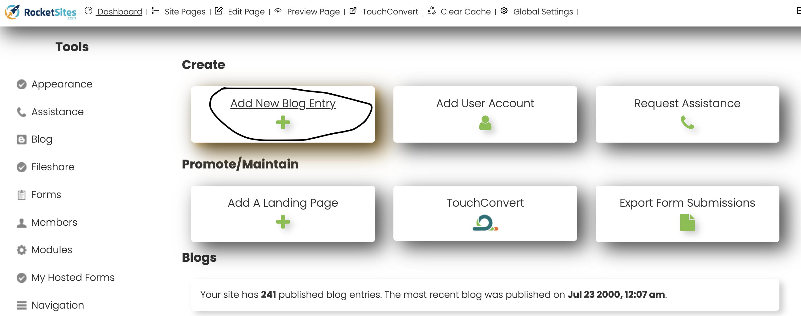 From Dashboard, click on "Add New Blog Entry":