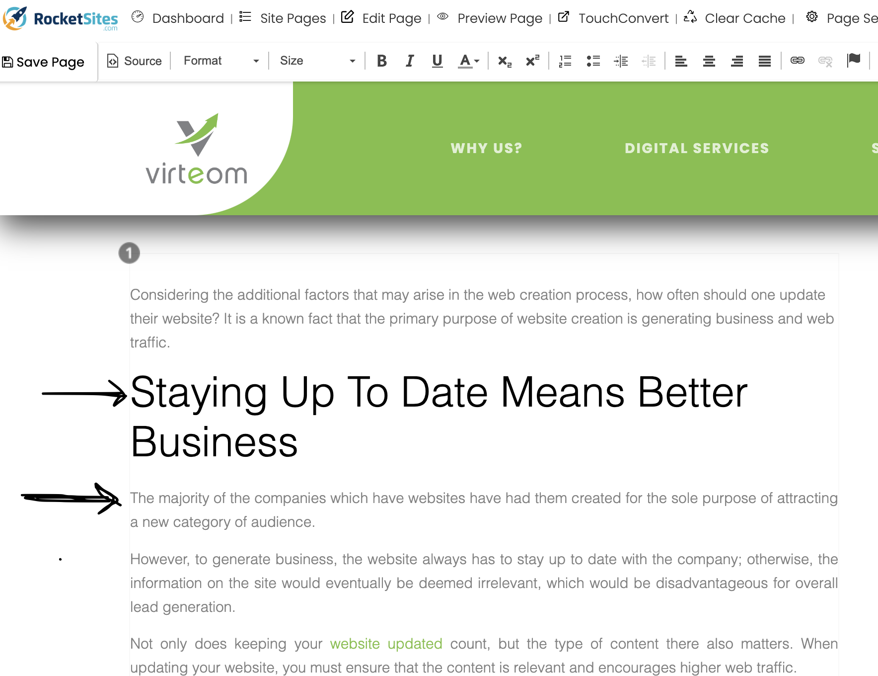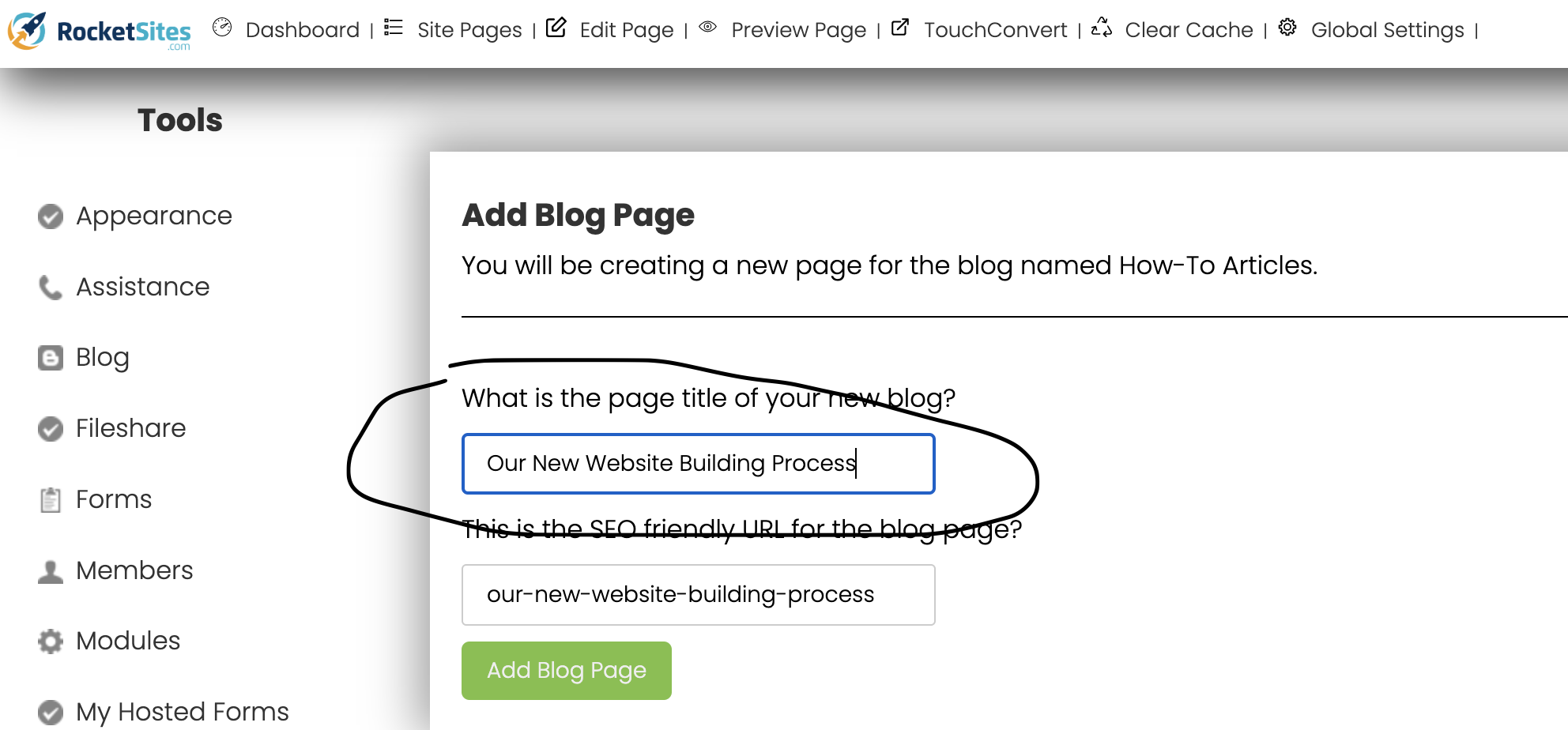 Then from this point, you will go back to the client's RocketSite blog page you are working on.