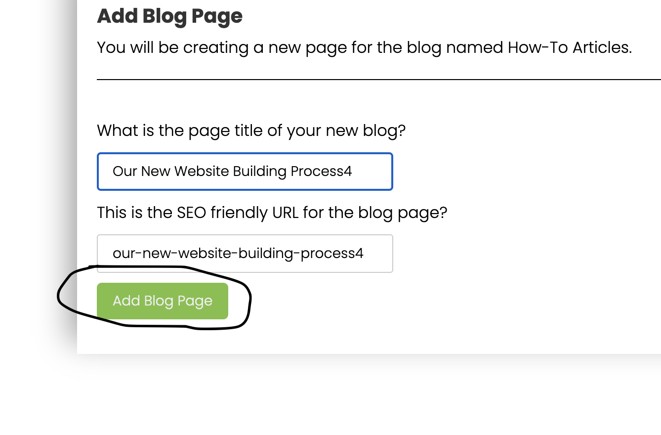 Click on "add blog page":