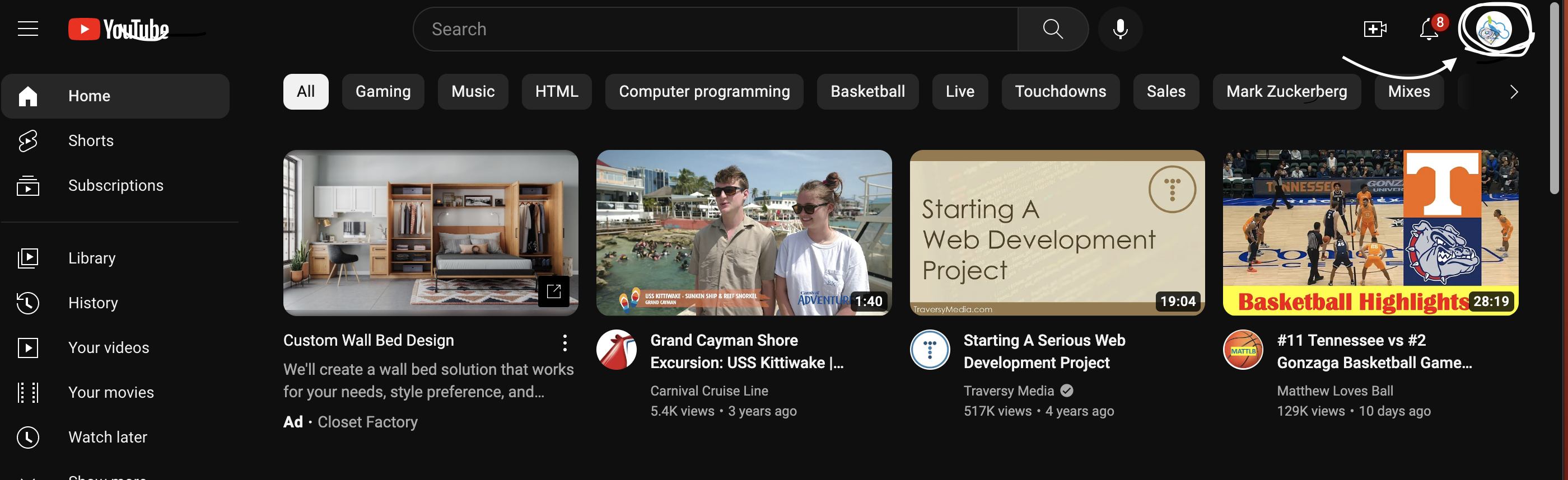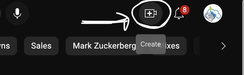 Click the upload button on YouTube:
