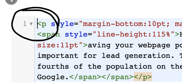 From this point, make sure the cursor is before the code like so: