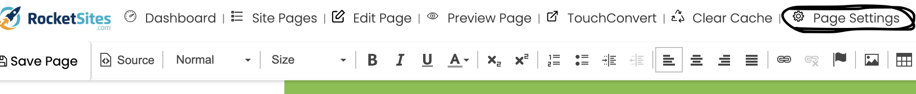 From this point, click on "Page Settings":