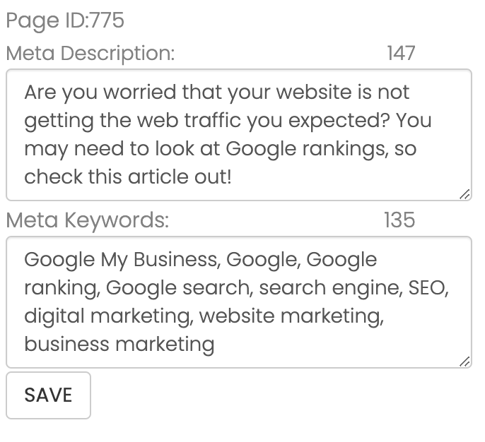 Once in "Meta Data," you will then ensure that you put in a meta description for the blog along with Meta Keywords like so: