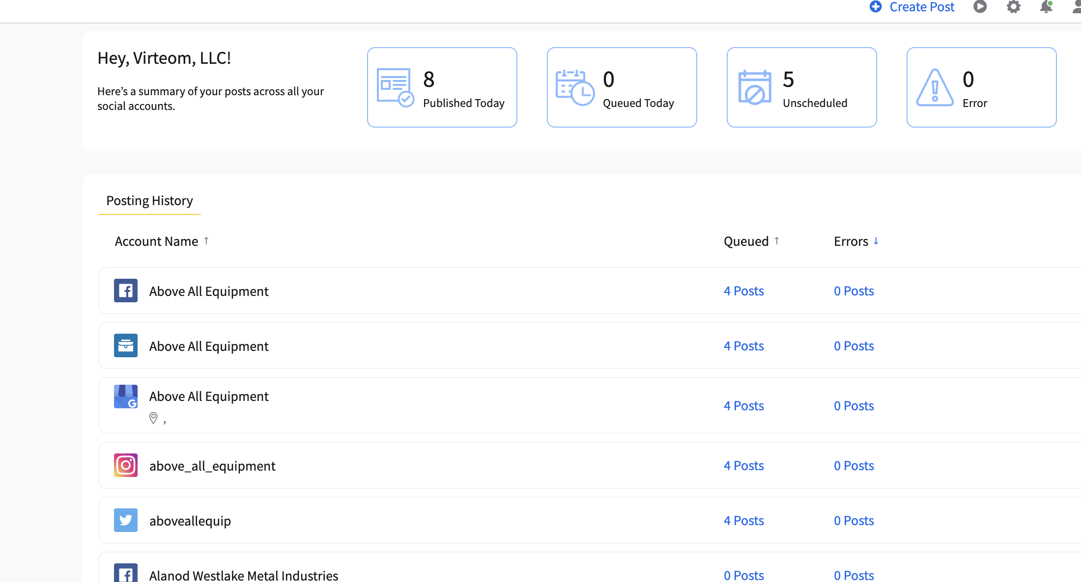 6. If there happens to be an error or several errors for several posts, you will want to head in and fix these issues, as the client's posts will not go out until the error is addressed.