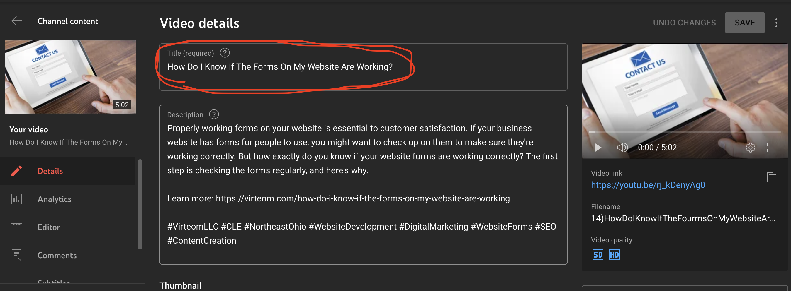 Once the blog is entirely written, you can head to the video on the client's YouTube channel and get the video ready by following the steps below.