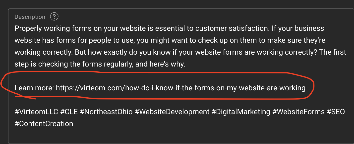 Then copy and paste the link to the blog post onto the description area: