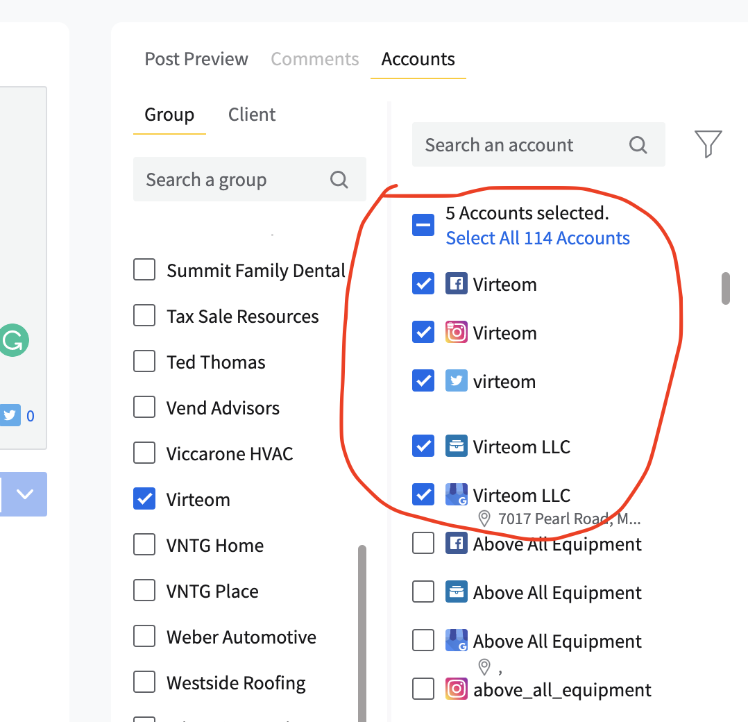 Once the blog and video have been published, it is time to post the social media posts to the client's respective platforms.