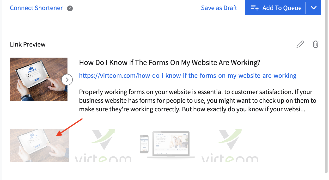 After this, ensure that the blog post will have a photo attached. You can either upload the same image used or scroll a little down and find it and click here like so: