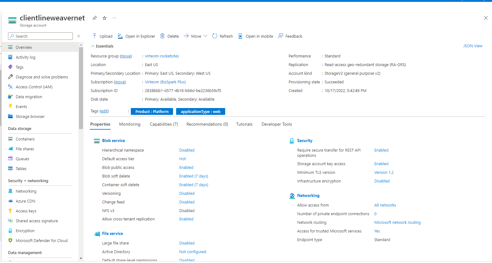 Once you set up your new container and make sure it has the correct permissions you can download the images from Azure CDN (virteom cdn) to your machine and then reupload them to the new CDN. You'll want to use the browser based Azure File Explorer for this. Once your images are there you can go and drop/import the new DB with the new paths. Verify on the live site that your paths are right and spot check that all your images are showing up. You can also go onto Edge, which was the culprit, and try to open a PDF. This should verify that the red screen issue is gone.