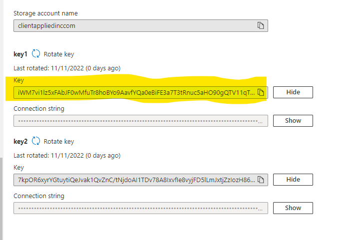 You will need to change the account name and the key. Use the key highlighted to make your change. You want the one that doesn't have any slashes /